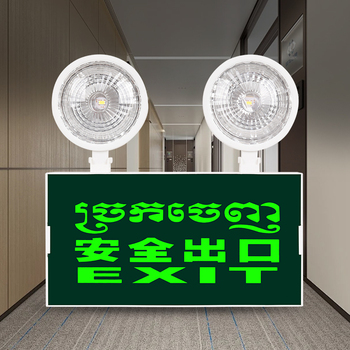 Señal de salida verde con luces de emergencia, luz de salida LED-Respaldo de batería, luz de emergencia comercial